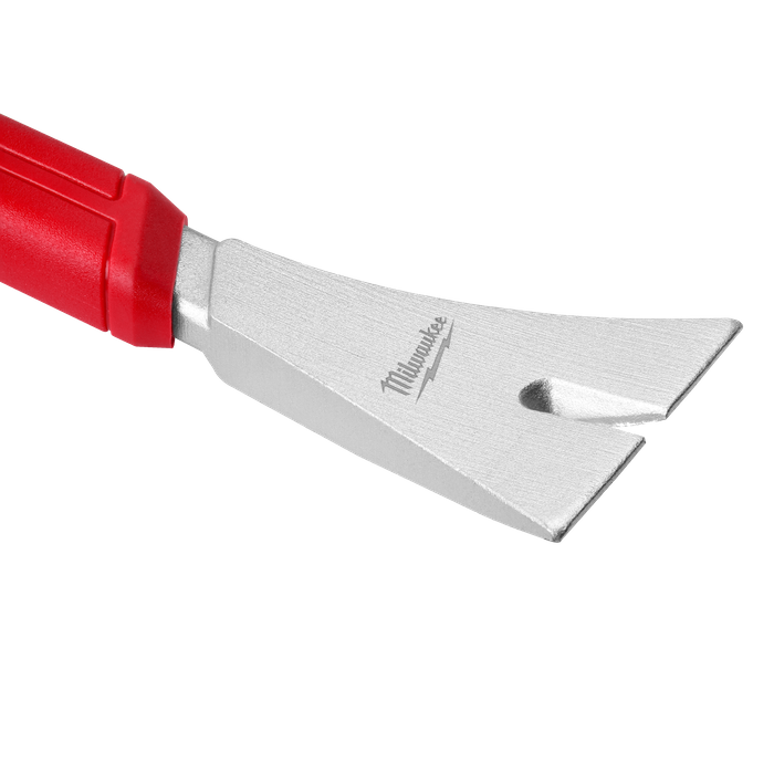 The Milwaukee 10in Molding Puller is equipped with our SMOOTHPULL™ high-leverage head delivering maximum leverage for quick nail removal. The durable grip is wear-resistant for continual comfort over the life of the tool and reduces vibration when the puller is struck by a hammer. The beveled edges of the puller claw allow for better grip on hard to reach nails, and the whale tail claw helps with wedging and prying in tight spaces. The sharpened claws and integrated nail removal feature on the head of the tool provide you with effective ways to remove embedded nails, reducing damage to surrounding materials. The unique head geometry, combined with the optimised design for 65-90mm nails, deliver increased efficiency on the job site.