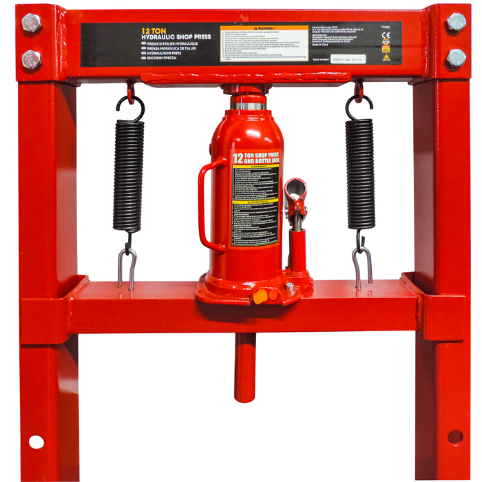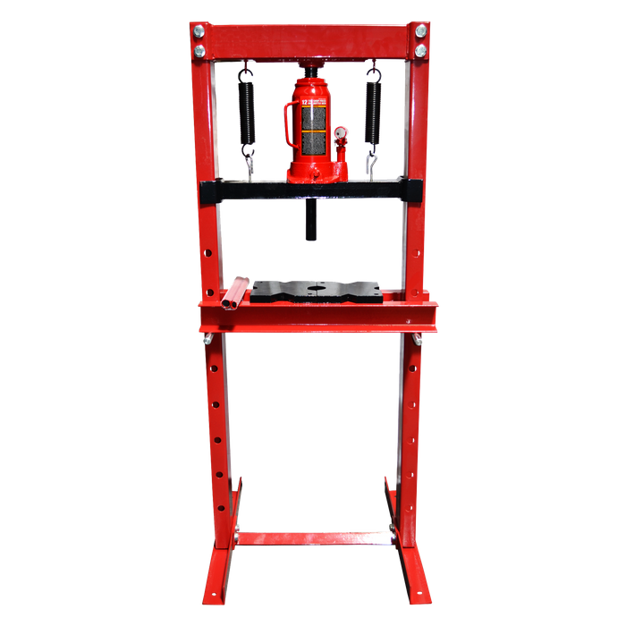 The ToolShed 12 Tonne Floor Press takes the frustration out of pressing bearings, sleeves and straightening. Manufactured mainly of welded, bolted and powder coated steel, this floor press is built tough while being resistant to rust to help it last. The strong return springs and cast-iron pressing dolly allow for a maximum pressure of 12 tonnes, perfect for handling all those jobs you need in the workshop or at home.