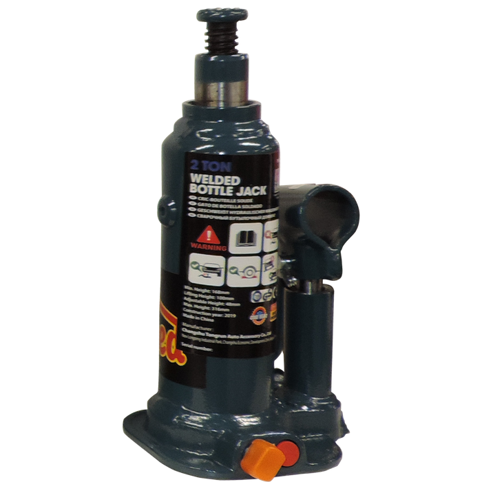 The ToolShed 2 Tonne Bottle Jack meets ANSI and ASME standards and is a must have when lifting vehicles, quad bikes, machinery, and building structures. This jack has a maximum lifting capacity of 2 tonnes with a minimum height of 181mm.