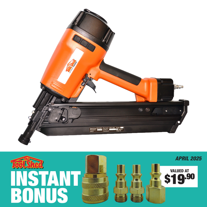 Takes all the standard Paslode, Senco, ToolShed angled D head framing nails