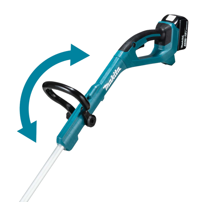 The 18V LXT® Cordless String Trimmer is a versatile solution for landscape cutting and trimming but without the hassles of petrol or a cord.The 18V LXT® Cordless Line Trimmer delivers 7,800 RPM and up to 45 minutes of run time on a single charge of the 18V LXT® Lithium-Ion 3.0Ah battery (sold separately). It has several advantages over petrol-powered trimmers: the DUR193 has zero emissions and reduced maintenance, with no need for petrol or oil. For users, the tool is always ready to use: simply load a fully-charged 18V LXT® Lithium-Ion battery and get to work. Versatility features include a telescoping shaft to adjust the length of the tool, a 180-degree rotating head with 5 adjustable positions, an adjustable loop handle, and more.