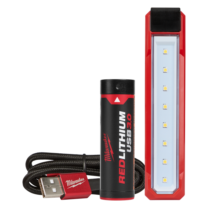 STICK IT. WEAR IT. CARRY IT. Powered by REDLITHIUM USB, the MILWAUKEE USB Rechargeable Pocket Flood Light delivers 445 lumens of TRUEVIEW High Definition output, and is capable of all-day runtime, over 2,000 recharges and 3X faster charging via USB. Stick, clip, and carry it anywhere with its dual magnet clip, perfect for mechanical, electrical, H/VAC-R, MRO, and automotive trades. The light is impact and chemical resistant to withstand harsh environments. With two light output modes, users can maximise brightness or extend runtime with up to 11 hours of light on a single charge. The REDLITHIUM USB Battery can be recharged in the light via Micro USB or swapped out with additional REDLITHIUM USB Batteries for virtually no downtime. The MILWAUKEE USB Rechargeable Pocket Flood Light is covered by a limited lifetime warranty.