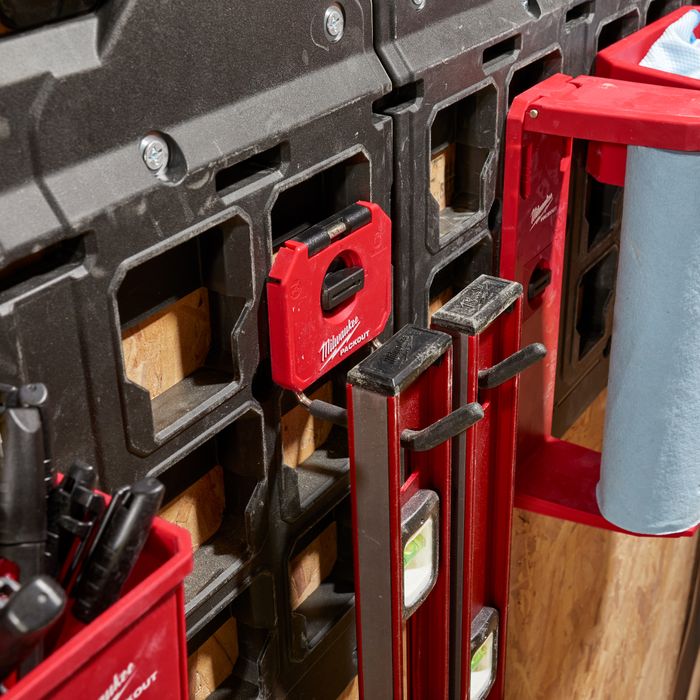 The Milwaukee PACKOUT™ 102mm/4in Straight Hook delivers the most secure mounting when paired with PACKOUT™ Wall Plates. This hook is constructed with metal reinforcement to maintain shape when loaded and is the perfect solution to store power tools, hand tools, and more . To keep your tools securely in place and protected, this hook features protective rubber grips. Additionally, our hook features connectivity with PACKOUT™ solutions allowing you to fully customise your shop.