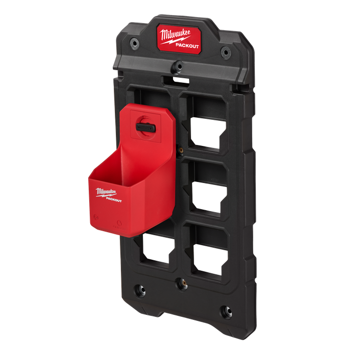 The Milwaukee PACKOUT™ Organiser Cup delivers the most secure mounting when paired with PACKOUT™ Wall Plates. The Organiser cup features quick access organisation and allows you to maximise your space both in shop and in your household. This Organiser is optimised to store cans, tumblers, and more. Additionally, our Organizer Cup features connectivity with PACKOUT™ solutions allowing you to fully customise your shop.