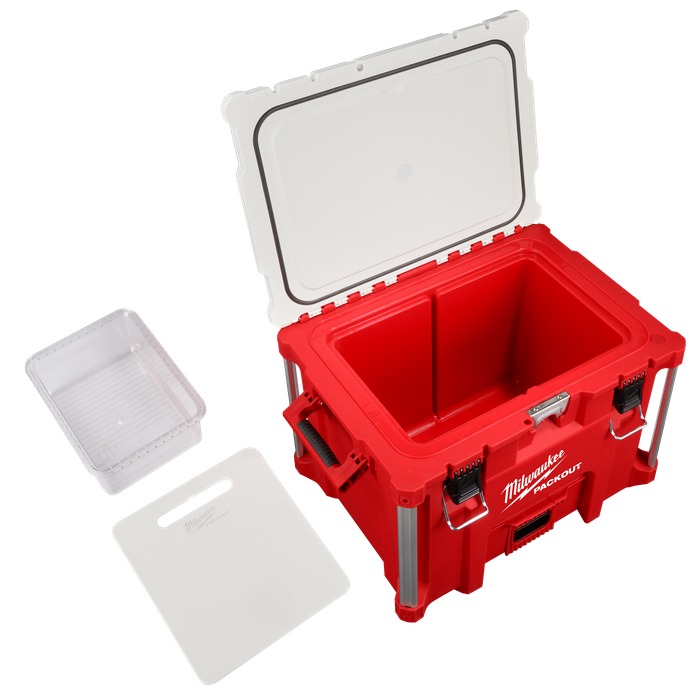 The PACKOUT™ Modular Storage System is the industry's most durable and versatile storage system. The PACKOUT™ XL cooler keeps ice for up to 5 days. The PACKOUT™ XL Cooler has been constructed with impact-resistant polymers for ultimate jobsite durability. This cooler is IP65 rated to withstand harsh environments and jobsite debris. This cooler comes with an integrated bottle opener, interior storage tray, and a food-grade cutting board/divider for maximum versatility on and off the jobsite. The MILWAUKEE® PACKOUT™ Modular Storage System allows you to customise a storage system that easily transports and organises your tools and accessories.