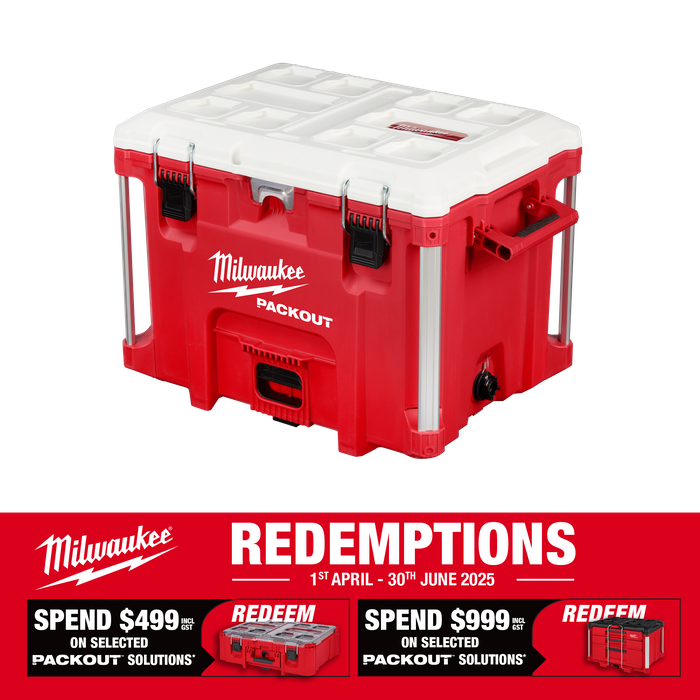 The PACKOUT™ Modular Storage System is the industry's most durable and versatile storage system. The PACKOUT™ XL cooler keeps ice for up to 5 days. The PACKOUT™ XL Cooler has been constructed with impact-resistant polymers for ultimate jobsite durability. This cooler is IP65 rated to withstand harsh environments and jobsite debris. This cooler comes with an integrated bottle opener, interior storage tray, and a food-grade cutting board/divider for maximum versatility on and off the jobsite. The MILWAUKEE® PACKOUT™ Modular Storage System allows you to customise a storage system that easily transports and organises your tools and accessories.