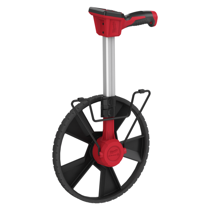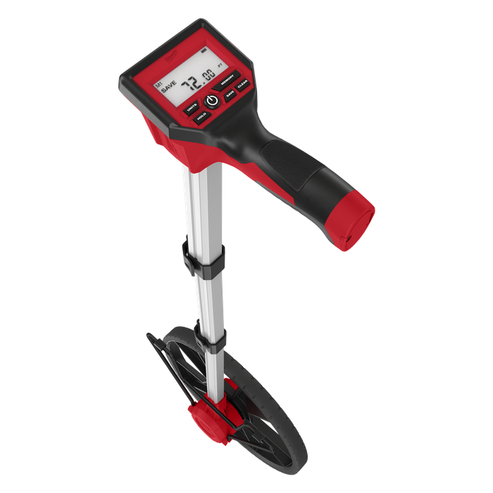 Our 305mm Digital Measuring Wheel has been designed with efficiency and convenience in mind, giving you the ability to control the tool with one-hand using the handle-mounted buttons and digital display. The backlit screen has an IP54 rating for durability and features a highly intuitive interface. The digital interface allows you to save and store up to four measurements, measure and convert in Metric, Imperial and Engineer Scales, as well as hold and clear measurements with just the touch of a button. The frame telescopes to multiple heights and is easy to store. This MILWAUKEE® Digital Measuring Wheel takes 2 AAA batteries (included).