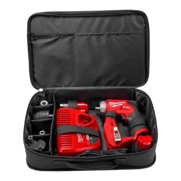 The M12 FUEL™ Installation Drill/Driver Kit features 4 dedicated solutions, delivering unrivaled access and control with up to 34Nm of max torque. The four dedicated heads which includes a 3/8” Chuck, Offset Driver, a ¼” Hex, and a Right Angle can attach in 16 different positions. This provides a 4-in-1 drilling and driving solution that is purposefully designed to reach uniquely challenging locations. The compact drill driver features a slim tool profile and an inline grip in the back of the tool that provides ultimate tool control and unrivaled access. The top of the tool is flat, allowing the tool to be placed flush against surfaces for additional access when needed. The front of the tool is equipped with a magnetic bit holder that securely holds multiple bits thus enhancing efficiency. These unique features combined with the tool’s compact size and weight allows you to manoueuvre the multi-head drill/driver for maximum versatility and access hard to reach places. The modular drill/driver is equipped with a POWERSTATE™ Brushless Motor, delivering you with 1600 RPM and 34Nm of torque. This provides you with the necessary power for installation applications, especially in electrical, cabinet installation, HVAC, automotive, and remodel applications. The installation drill/driver features REDLINK™ Plus Intelligence which protects your tool from overloading or overheating. The compact cordless drill/driver is powered by our M12™ REDLITHIUM™ battery packs, delivering you with more runtime per charge and more work over the life of the pack.