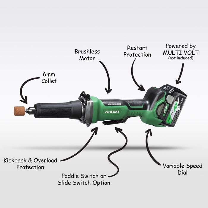 - HiKOKI Cordless Die Grinder Brushless Paddle 18v - Bare Tool