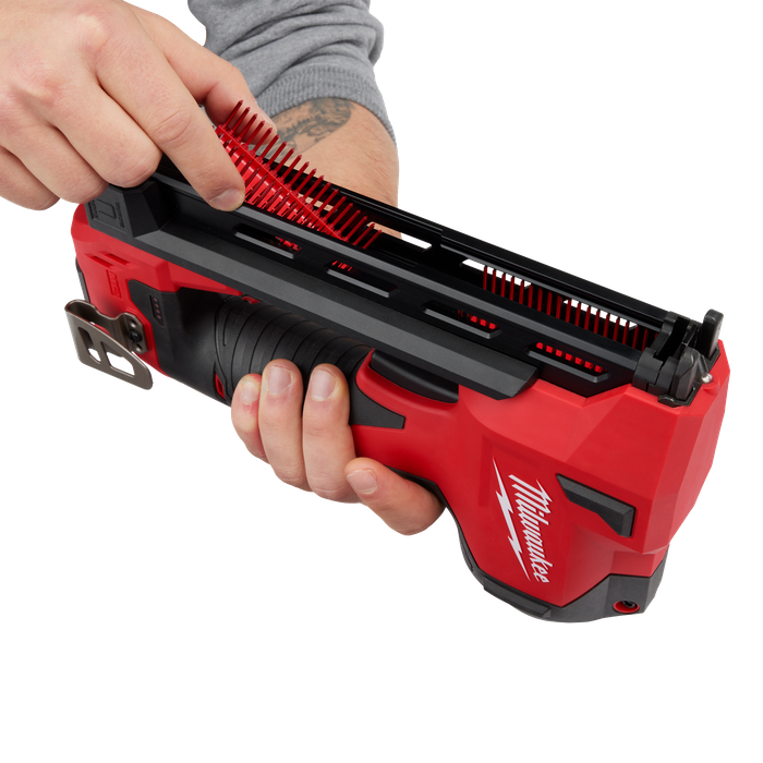 The Milwaukee® M12™ Cable Stapler delivers unmatched stapling performance in the most compact battery-powered solution leading to a faster, more efficient rough-in process. Our compact, lightweight design provides users with access to tight stud bays and improved ergonomics when stapling overhead or during difficult-to-reach situations. Moveable cable guides ensure proper alignment and the coil-spring mechanism consistently sinks the staples to the appropriate depth when fastening NM-B Sheathed Cable (14, 12, 10 AWG) and low voltage cables, supporting peak stapling productivity. Only compatible with our 25mm (1") insulated staples (sold separately), the M12™ Cable Stapler gives the user the run-time needed to sink up to 1,200 staples on a fully charged M12™ REDLITHIUM™-ION 2.0Ah battery.