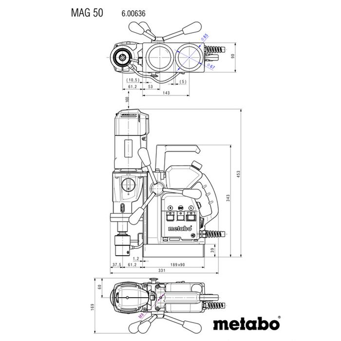 - Magnetic base with high holding power permits working on vertical surfaces and overhead