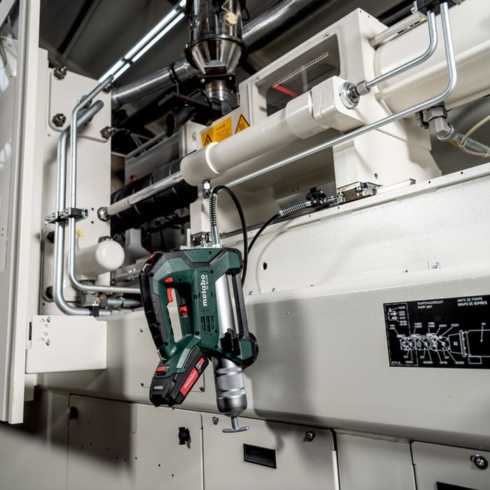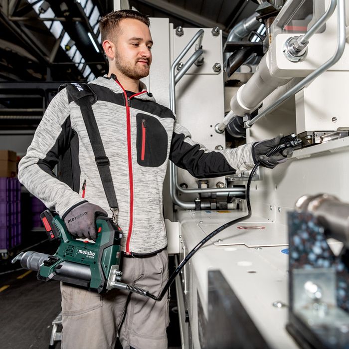 - Compact cordless grease gun with 2 settings and high discharge pressure (max. 690 bar) for mobile maintenance of machines and systems