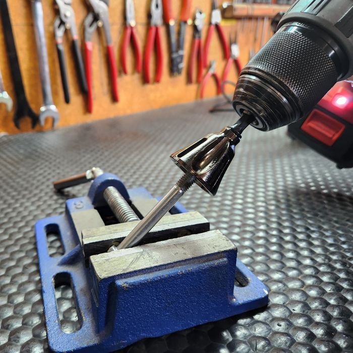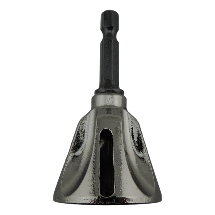 The ToolShed Drill Chamfer is designed to quickly cut external chamfers on the ends of bolts or rods (3-20mm). Perfect for fast and safe repairs to damaged bolts, burr removal and threading work. 1/4in Hex shank fits standard power drills and it is suitable to cut steel, stainless steel, brass, wood, copper, and plastic.