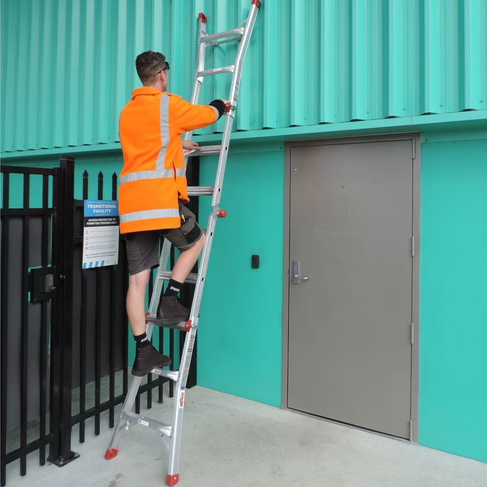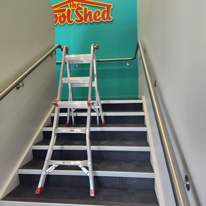 The ToolShed Multi-Function Ladder complies with AS/NZS safety standards and has an extra wide flared bottom for added support.