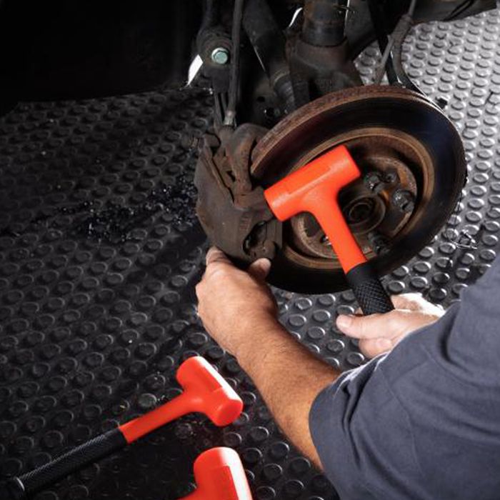 Resistant to gas, brake fluid, anti-freeze and more, with a polyurethane head and rubber handle which has a Knurled texture and flared back end for improved Non-slip grip