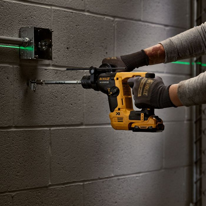 Tackle tough jobs with this high-performance XTREME™ 12V Brushless Cordless 14mm SDS PLUS Rotary Hammer. 1.1 J of impact energy are delivered by the professional-grade DEWALT® brushless motor and durable German-engineered mechanism. The lightweight and compact design makes this versatile tool well-suited for mounting strut, installing conduit, hanging fixtures, pipe clamp anchoring, and maintenance repair operations when combined with light masonry screw anchors.