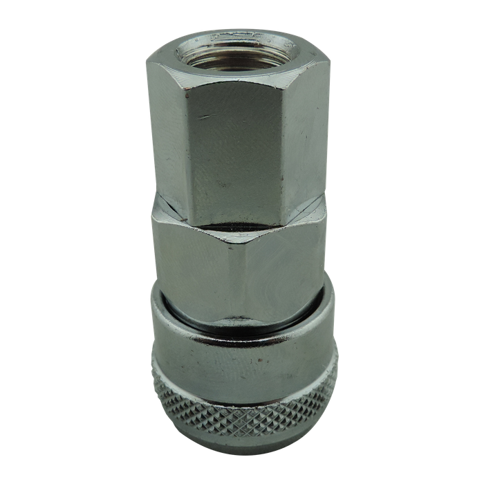This Nitto style ¼" Female Coupler is designed to fit other Nitto style plugs to connect air compressors, hoses, and other tools. This coupler is made from zinc coated steel to help avoid corrosion and give good wearability.