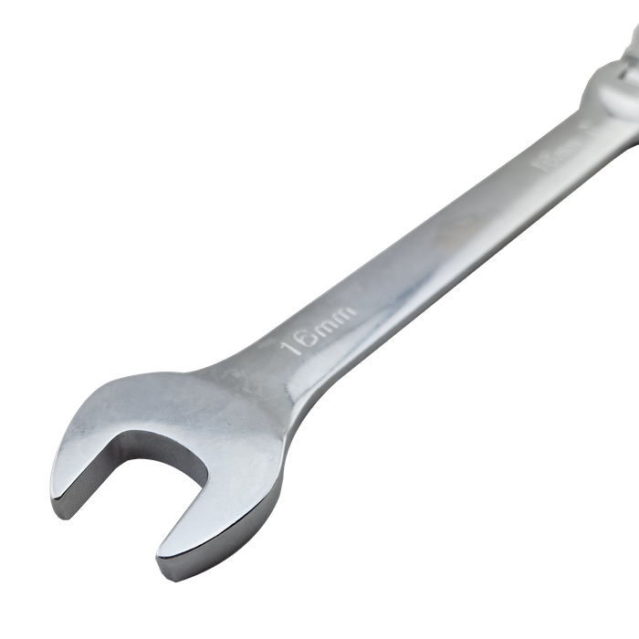 - The other end is a flexi ratchet head that offers 180° of motion to reaching those awkward bolts a standard spanner can’t