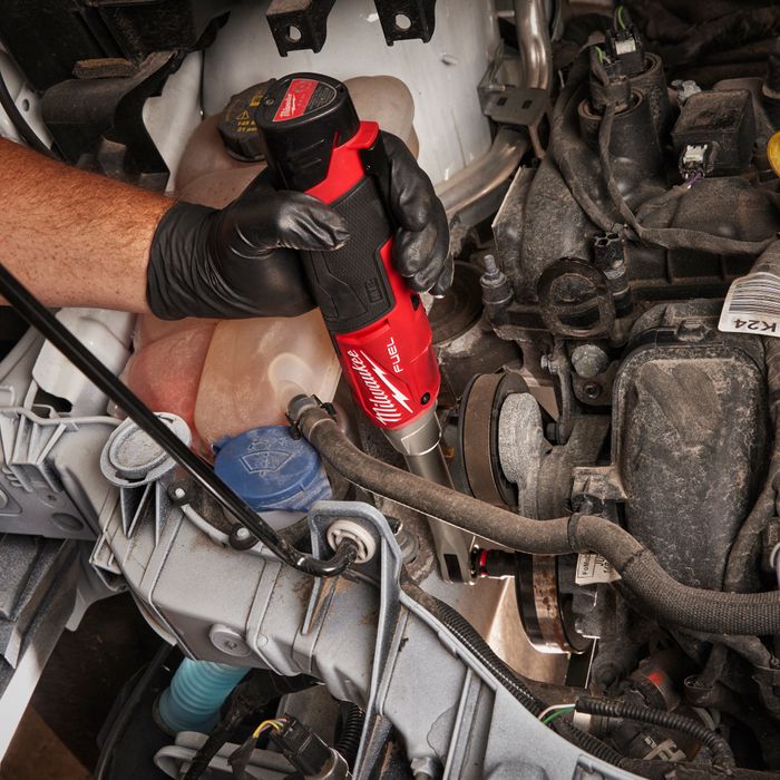 The M12 FUEL™ 3/8" High Speed Extended Reach Ratchet is the latest addition to Milwaukee's battery-powered ratchets. The M12 FUEL™ ratchets provide fast cordless speed with a slim head profile and an extended neck that will provide more access in tight spaces. Simultaneously, the recessed forward-reverse shift knob allows users to easily switch between tightening or loosening fasteners. The 3/8" Ratchet provides performance of up to 47.5 Nm max torque, the same torque output as the M12 FUEL™ High Speed Ratchets. The High-Speed Extended Reach Ratchets feature an Investment Cast Steel Yoke housing and a POWERSTATE™ Brushless Motor that delivers great durability. The cordless ratchet features built-in REDLIINK™ tool technology to help users reduce fatigue and increase productivity.