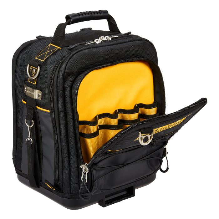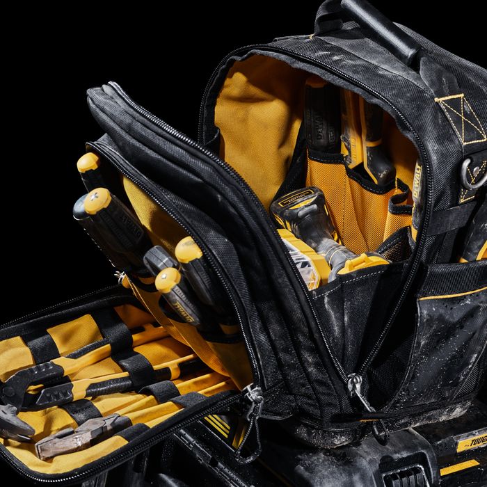 - Multiple organisation with internal and external storage with special pockets for power tools, batteries and gear