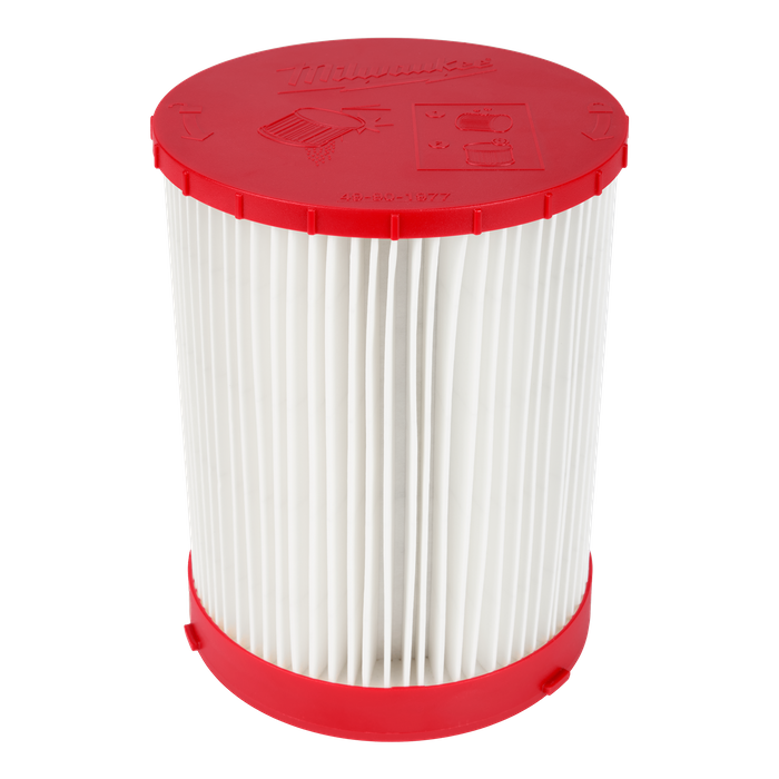 The Large Wet/Dry Vacuum HEPA Filter is compatible with multiple Milwaukee Wet/Dry Vacuums (M18FVC23L0, M18FVC34L0, M18FVC45L0). An installed HEPA Filter captures 99.97% of all particles greater than 0.3 microns for fine dust collection, ensuring dust and microparticle collection of debris such as concrete dust, sawdust, and drywall dust. Users can quickly swap or clean filters with the easy access quarter-turn design. The MILWAUKEE® Large Wet/Dry Vacuum HEPA Filter is dry cleanable and washable with water when necessary.