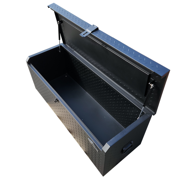 Crafted from high-quality steel, this tool box is built to last and can withstand the toughest work environments. Featuring a spacious interior, this tool box provides ample storage space for all your tools, parts, and equipment. The top lid features gas struts and opens to reveal a large compartment for storing items around site so you can keep them close by.