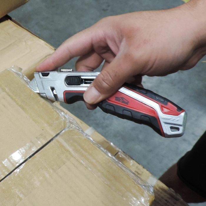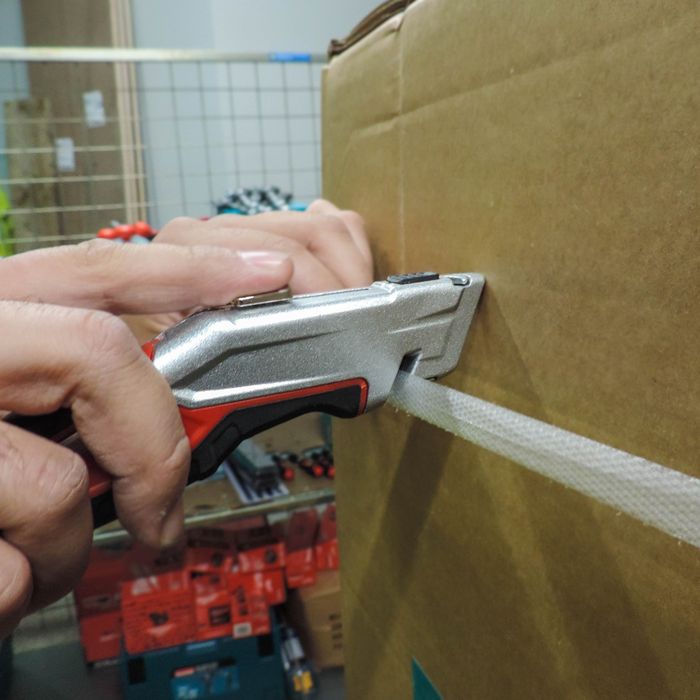 - Hidden box strap cutting blade for safety, reducing the need to extract the knife to cut straps.