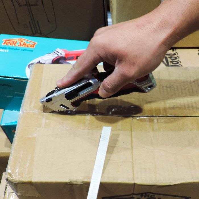 The latest Utility Knife from the ToolShed is new and improved with some impressive safety features. Manufactured with heavy-use applications in mind, the handle grip is made of comfortable lightweight rubber to minimise the risk of slipping in your hand during use, the body is constructed from Aluminium alloy that is durable to last its lifetime, and light enough so as not to cause hand fatigue while using it.