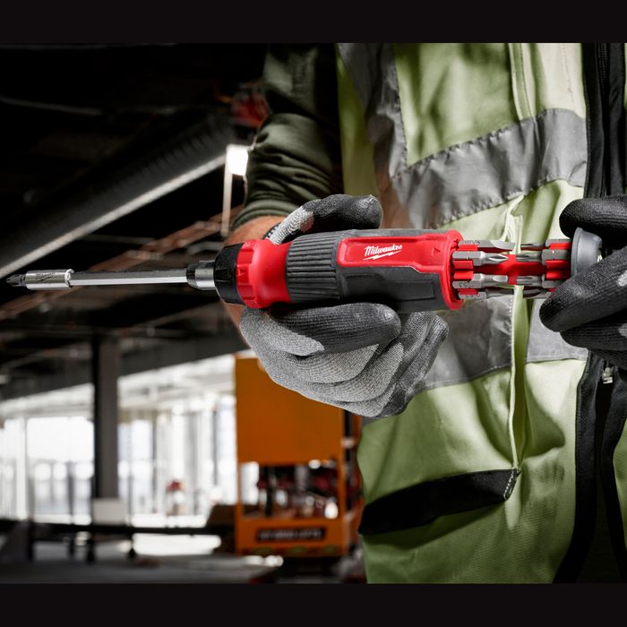 The Milwaukee® 14-in-1 Ratcheting Multi-Bit Screwdriver is a very versatile multi-bit screwdriver. This multi-bit driver features easy-access in-handle storage which keeps bits organized, allowing you to quickly change bit sizes and types. The durable, all-metal ratchet allows for higher torque and faster driving. The chrome-plated bit holder provides rust protection and reduces wear from elements on the jobsite. The Milwaukee® 14-in-1 Ratcheting Multi-Bit Screwdriver is backed by Milwaukee’s Limited Lifetime Warranty.