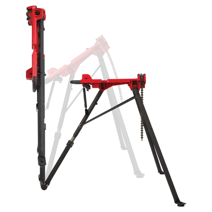 The 152mm (6”) Leveling Tripod Chain Vice delivers unmatched portability and lifelong steadiness for mechanical, electrical, and plumbing tradesmen working with pipe, conduit, and other materials. Its flat-folding design and balanced carry handle enable briefcase-style transportation and compact storage in job boxes and service vans. Our simple two-step deployment eliminates setup hassles delivering the quickest, painless setup. STABLE LOK,™ provides easily adjustable tension to steady the deck and provides lifetime sturdiness. Featuring an adjustable leg for level alignments, you can pitch the deck +/- 3 degrees to level work materials and build systems to a pitch. With an expansive work surface and multi-material chain vice, this pipe stand tripod serves as a portable work desk for all tradesmen installing pipe, conduit, and other materials.
