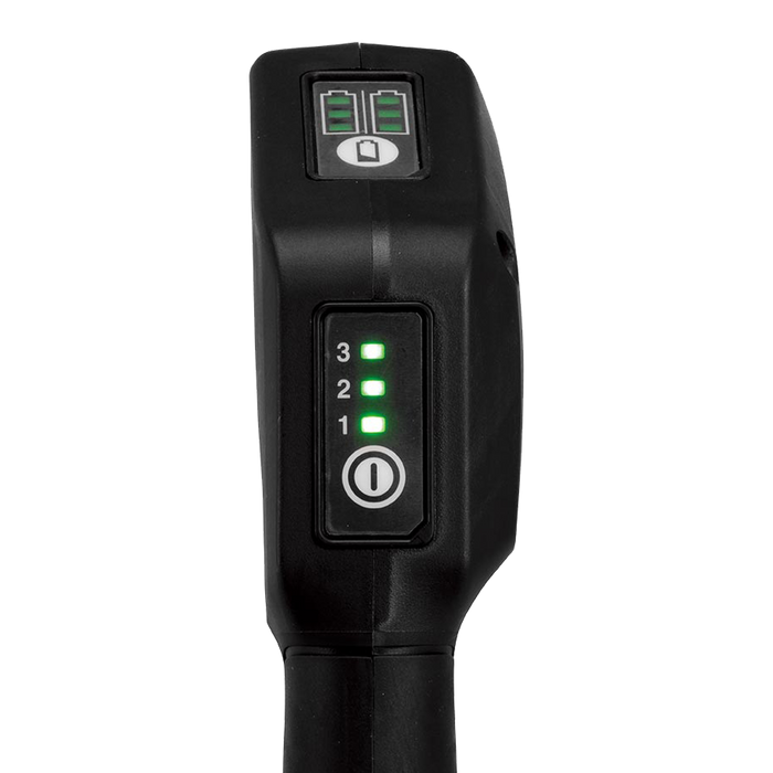 - Up to 22mins continuous operation on high mode with 2x 8.0Ah batteries