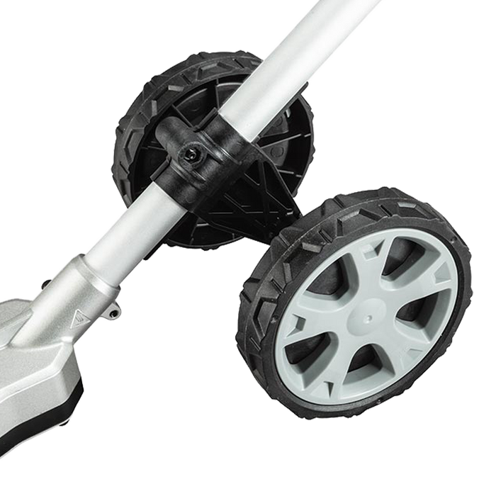 - Easy grass trimming simply by pushing this attachment forward on 130mm large wheels.
