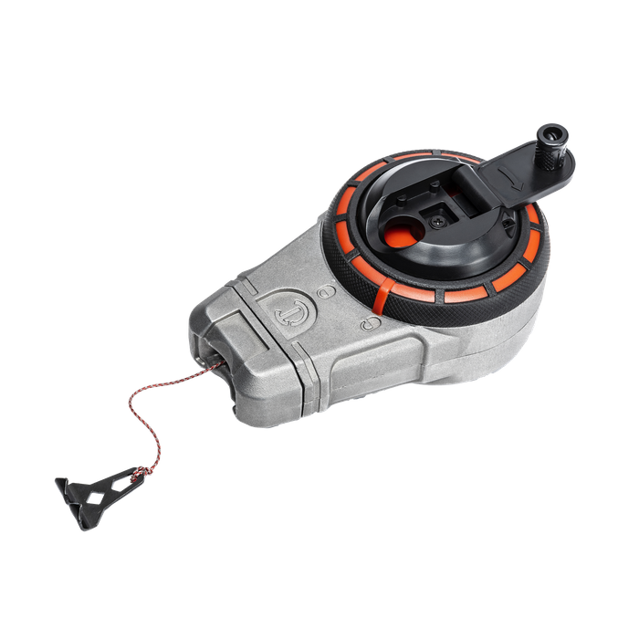 Crescent chalk reels are feature-rich in order to make every pro’s work easier. With a one-way refill valve and a quarter-turn removable top, filling the chalk reel is quick and clean. A one-hand hub lock keeps the reel firmly secured and the end hook slides securely into a storage recess so it won’t catch on other items in your tool bag. With a 6:1 gear ratio, retraction is fast and the compound braided line improves chalk retention for well-defined lines, snap after snap.