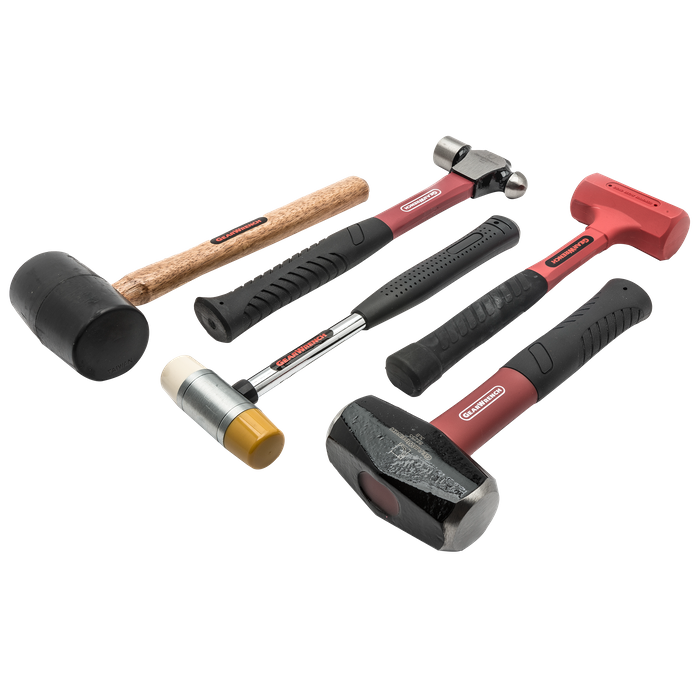 This popular set of the hammers and mallets from GEARWRENCH contains five common styles of hammers to perform a wide range of applications. These hammers all feature the exceptional strength and innovation that come with the GEARWRENCH name. This set includes a 16-ounce ball pein hammer with a fiberglass handle, a 3-pound drilling handle with a fiberglass handle, a 12-ounce soft-faced hammer with removal caps, a 16-ounce dead blow hammer with a composite handle, and a 16-ounce rubber mallet with a hickory handle.