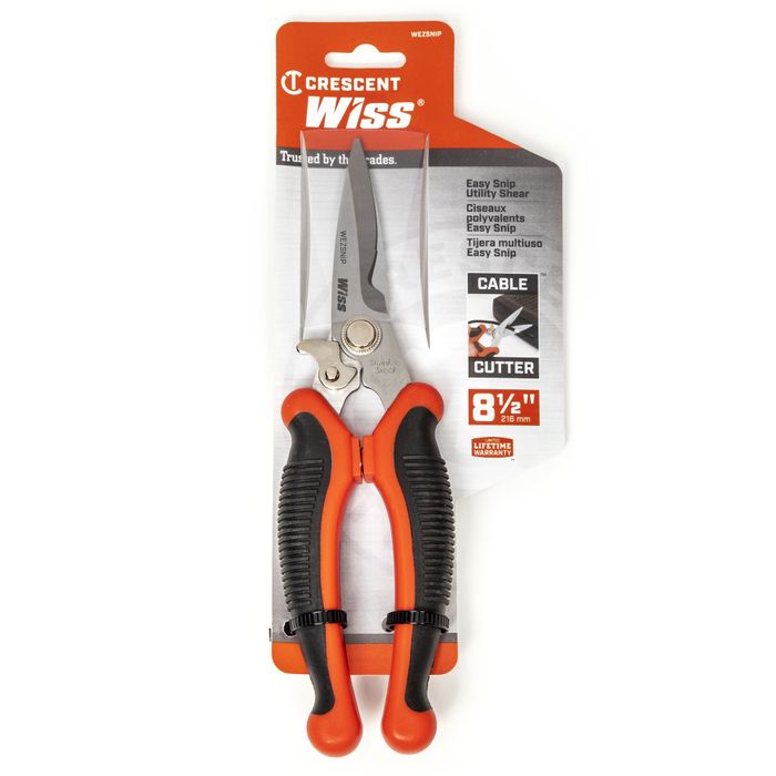 The Crescent Wiss® Easy Snip Utility Shear features a serrated bottom blade that grips material as it cuts and a wire cutting notch for cutting light gauge wire. These Snips are great for use in the shop, garden, and home.