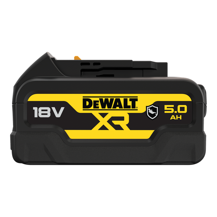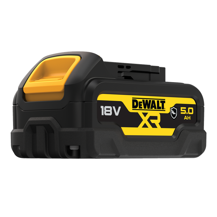 DeWALT 18V 5.0Ah Li-Ion Batteries deliver 66% more runtime than a standard 3.0Ah battery pack. Protection against overheat, overload & deep discharge conditions increases battery life, whilst no memory effect & virtually no self-discharge provides for maximum productivity & less downtime.