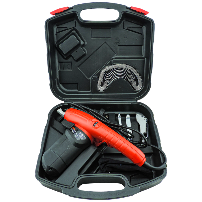 This little finger sander uses the same size belts as the Black and Decker powerfile and are available from your local ToolShed.