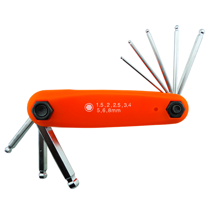 This nice compact hex key set comes in a very convenient, lightweight, extra tough PVC Plastic case, with the keys attached at either end. The keys easily fold back into the case making it great for carrying around in your pocket or storing away. The plastic handle is shaped for optimal user comfort and features a strong steel bolt to secure the keys and withstand high torque.
