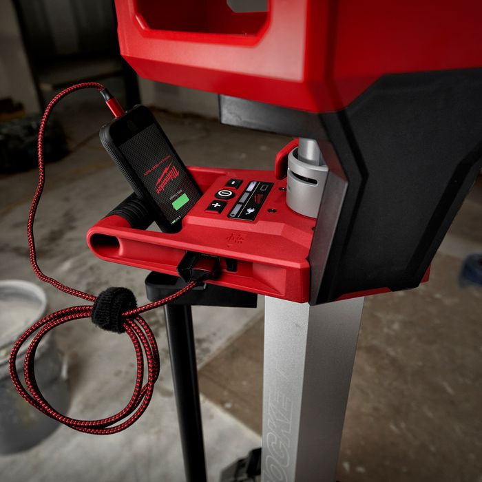 The M18™ High Output Stand Area Light/Charger is designed to deliver users a lighting solution that adapts, performs, and survives on the jobsite. The tower light can be set up in seconds, to a maximum height of 2.1 metres and collapses to 1.2 metres for easy transportation and storage. The mast can be extended, increasing the Stand Area Light/Charger's height from 1.2 to 2.1 metres, letting users light up overhead work or minimise shadows when casting shine downward. The multi-directional light head allows users to orient the three independently pivoting light heads to cast light in several directions. With an integrated AC cord , users can plug in the light and charge any M18™ REDLITHIUM™-ION battery pack, or use the USB port to charge their devices on site, with convenient device storage when charging. For optimised control over lumen output and runtime, the M18™ High Output Stand Area Light/Charger has three output settings. Delivering up to 6,000 lumens, the M18™ High Output Stand Area Light/Charger illuminates large areas with TRUEVIEW™ High Definition light.