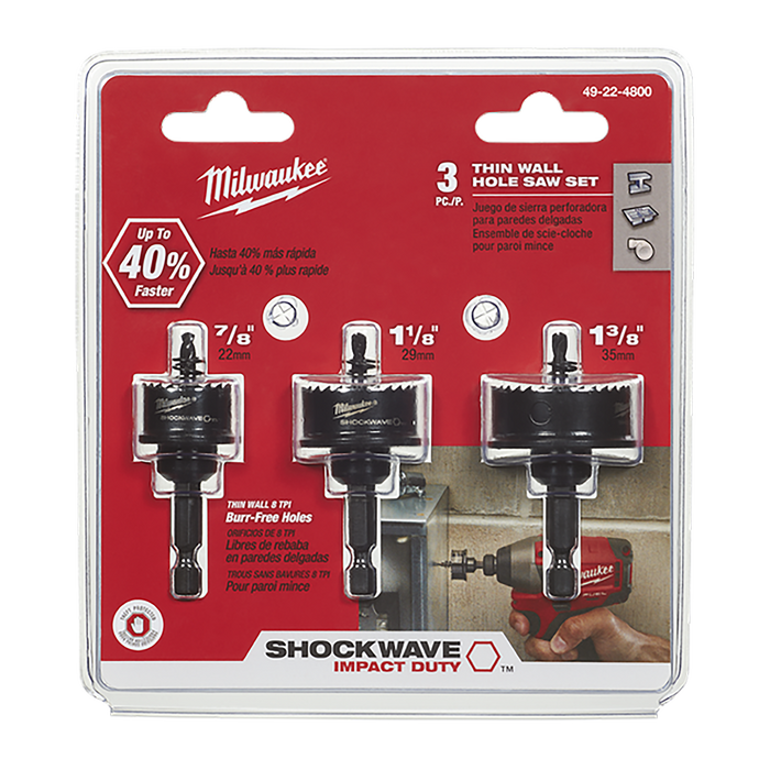 - Milwaukee SHOCKWAVE Holesaw Set Thin Wall 3pc