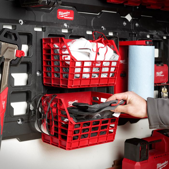 The PACKOUT™ Compact Wall Basket delivers secure mounting when paired with PACKOUT™ Wall Plates, strongly holding the PACKOUT™ solution mounted to the wall. This Compact Tool Storage Basket has a 4.5kg weight capacity and is optimised to store gloves, bit cases and more. The quick access opening allows you to easily retrieve stored items. MILWAUKEE® PACKOUT™ is the industry's most versatile and durable modular storage system allowing you to fully customise your workshop, garage or vehicle.
