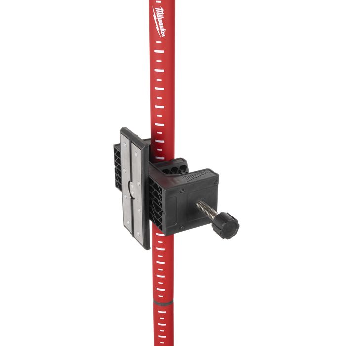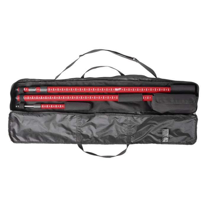 Part of Milwaukee's extensive laser accessory range, the 3,657mm (12') Telescoping Laser Pole is designed to provide a fast set-up and stable laser line. The Telescopic Laser Pole features threaded and telescoping sections for easy set-up and a secure fitment in interior environments. The quick-release laser pole clamp and reference marks allow users to effortlessly set lasers at the correct elevation, and the non-marring swivel top plate leaves no scuff marks. The lightweight, durable aluminium body ensures it will survive the jobsite, and the storage bag keeps it protected during transport.