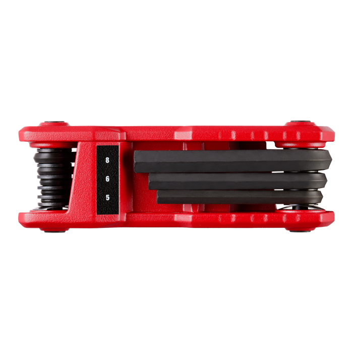 The Milwaukee 8-Key Metric Folding Hex Key Set features one of the easiest key access on the market. The access zones on the handle and a key shelf to elevate the keys make it quicker to grab the needed key. The handle has long-lasting, high-contrast markings to help identify the correct sized key for the job. The full metal body construction withstands high torque and extends the life of the tool in the toughest jobsite conditions, while the shape of the handle is optimised for comfort. The keys rotate 270° for greater access and torque in tight spaces. The convenient folding hex wrench set makes transportation and storage simple.