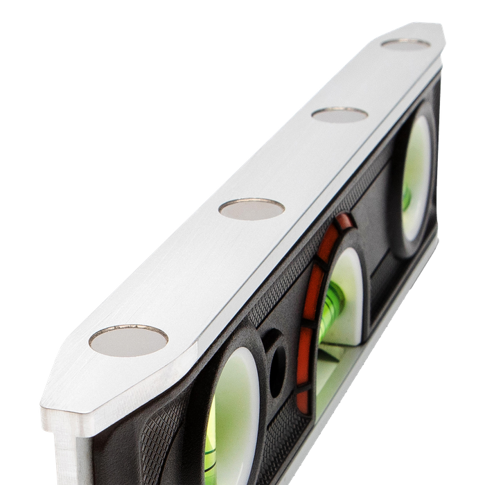 - Additional pair of pitch lines on the center vial offers 1/4" pitch reference