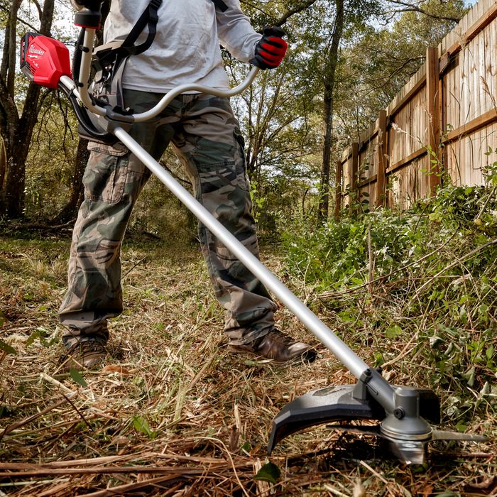 The M18 FUEL™ Brushcutter/Line Trimmer with Double Shoulder Harness has the power to clear thick brush and reach full throttle in under 1 second, while minimising