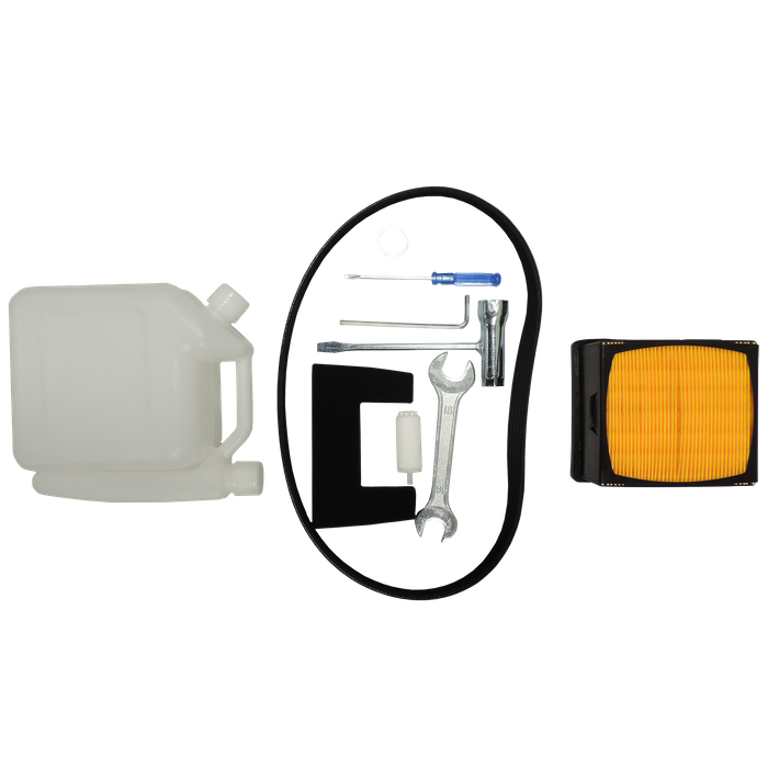- Has a muffler to keep noise levels low and direct exhaust fumes away from the user.