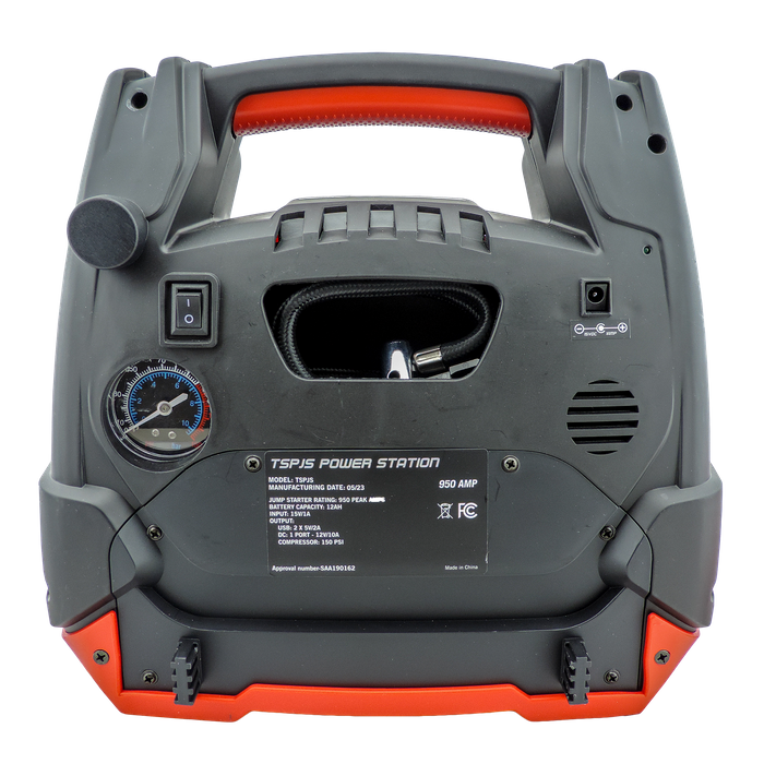 This little unit also features an integrated LED work light to illuminate any nighttime emergencies, two USB outputs for portable device charging, and two 12V outputs for plugging all sorts of accessories into. Another great feature of this unit is its air compressor capabilities. It features a 150PSI air compressor that can pump up all types of inflatables, even your car tyres, or perform regular pressure maintenance.