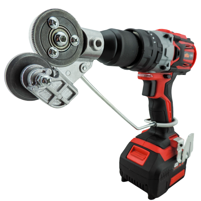 The attachment will go onto most drills, electric or cordless, and is simply inserted into the chuck like a regular drill bit. The dual cutting heads ensure a burr-free cut every time, and it is safer to use as you have minimal contact with the sheet metal or moving blades. This handy, compact attachment will turn your standard drill into an electric shear for use in many different industries or applications, it can then be dismantled and easily stored until next time.