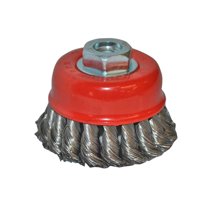 The twisted knots in the wire make it quite a bit more aggressive than a standard cup brush. The bristles on these brushes have been coated to avoid rusting.