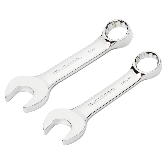GEARWRENCH combination wrenches are durable tools for most jobs. They are made from alloy steel with either a full polish or satin finish that resists rust & corrosion. The off-corner loading design on both ends provides a stronger grip on fasteners, reduces fastener rounding, and delivers up to 25% more torque to the fasteners. Sizes are stamped on the beam for quick, easy, & permanent identification. The box end is offset 15° for increased access to fasteners. Available in stubby & long pattern lengths and 6 & 12 point, the GEARWRENCH combination wrenches are a must have for every toolbox.
